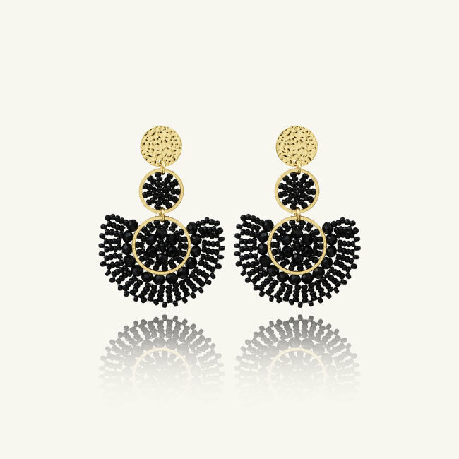 Boucles d'oreilles Sàntibé Bijoux Cancun en laiton, métal doré et perles noir