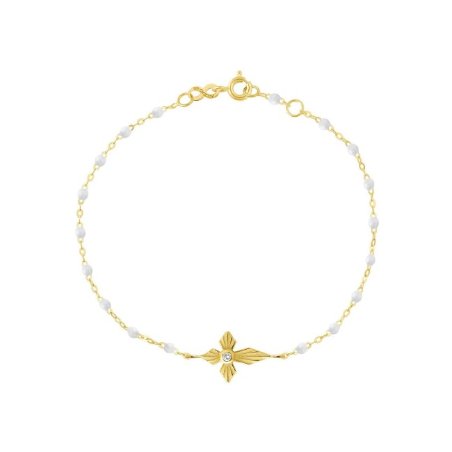Bracelet Gigi Clozeau Croix lumière en or jaune, résine blanche et diamant, 17cm