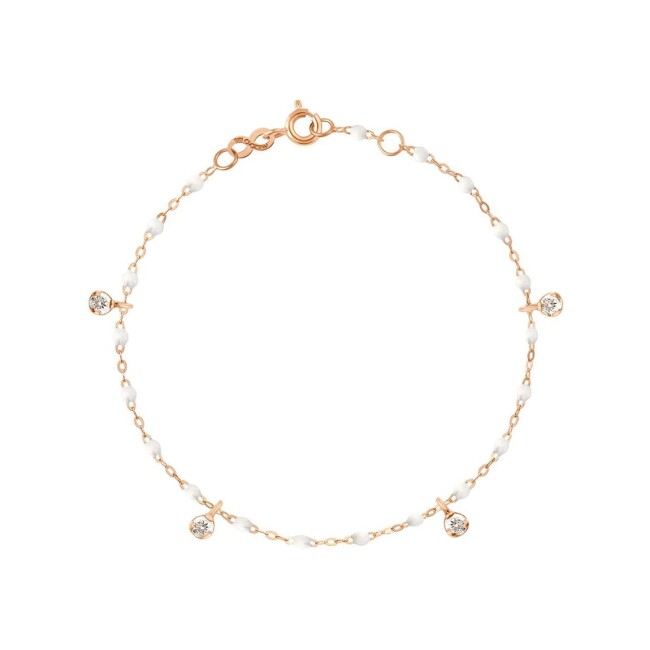 Bracelet Gigi Clozeau Gigi Suprême en or rose, résine blanche et diamants, taille 17cm