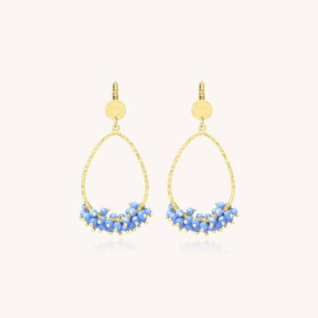 Boucles d'oreilles Sàntibé Bijoux Flora en laiton, métal doré et perles céleste