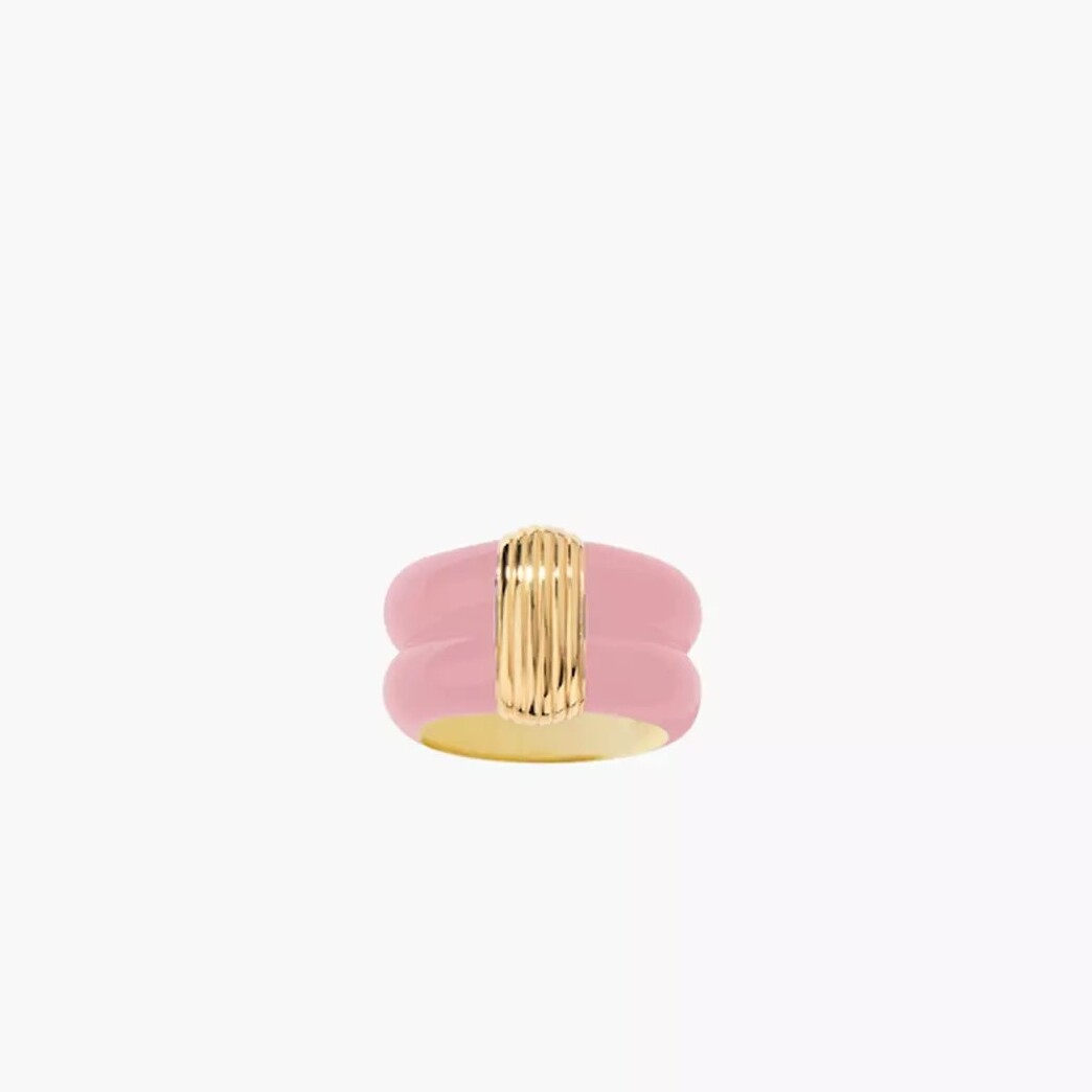 Bague Katt en résine rose recouverte d'un détail strié doré à l'or jaune 750/1000.
