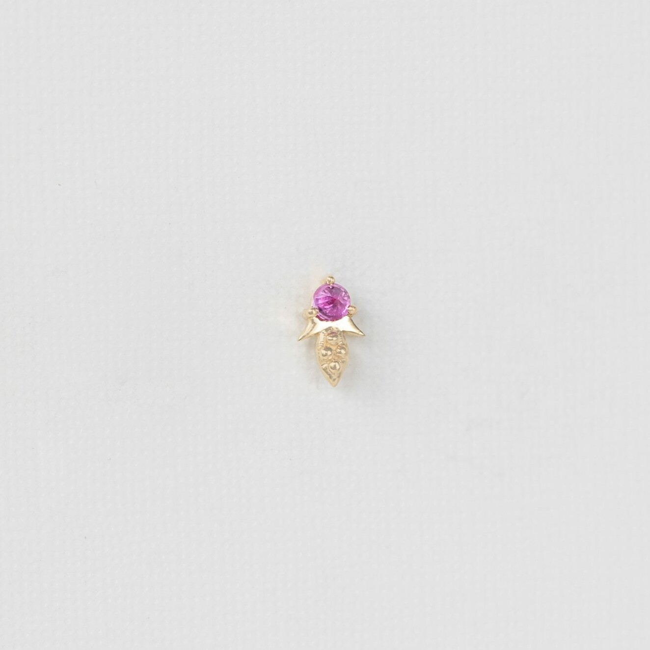 Boucle d'oreille unique Celine Daoust en or jaune clair 14 carats avec un saphir rose et des détails en forme de points.