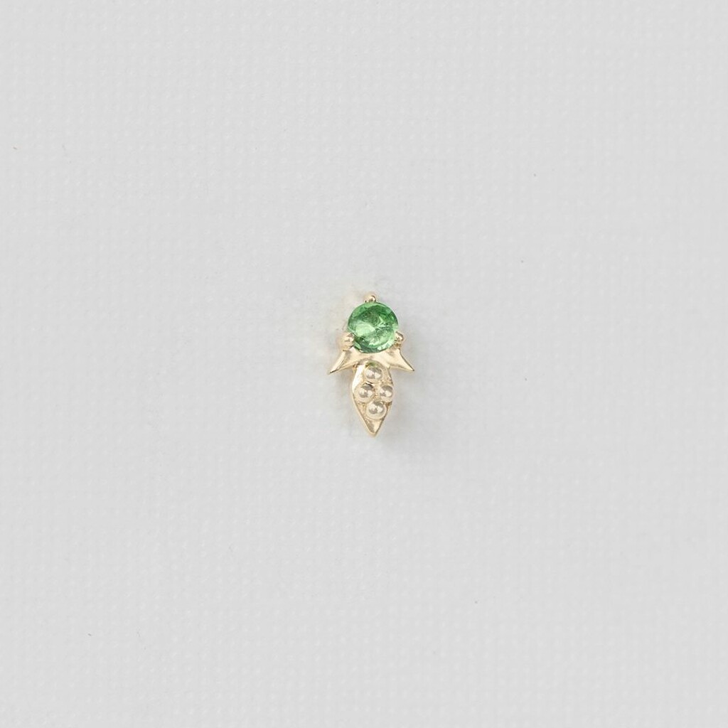 BOUCLE D'OREILLE SIMPLE CELINE DAOUST EN OR JAUNE CLAIR 14K AVEC UNE TSAVORITE ET DES DÉTAILS À POINTS.