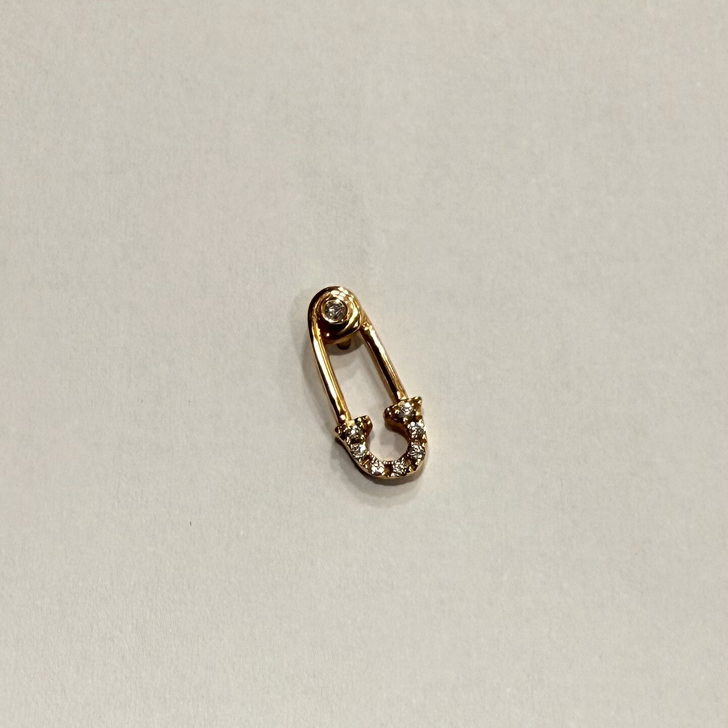 Cette boucle d’oreille épingle en diamants et or rose signée Djula, au design fin et contemporain.