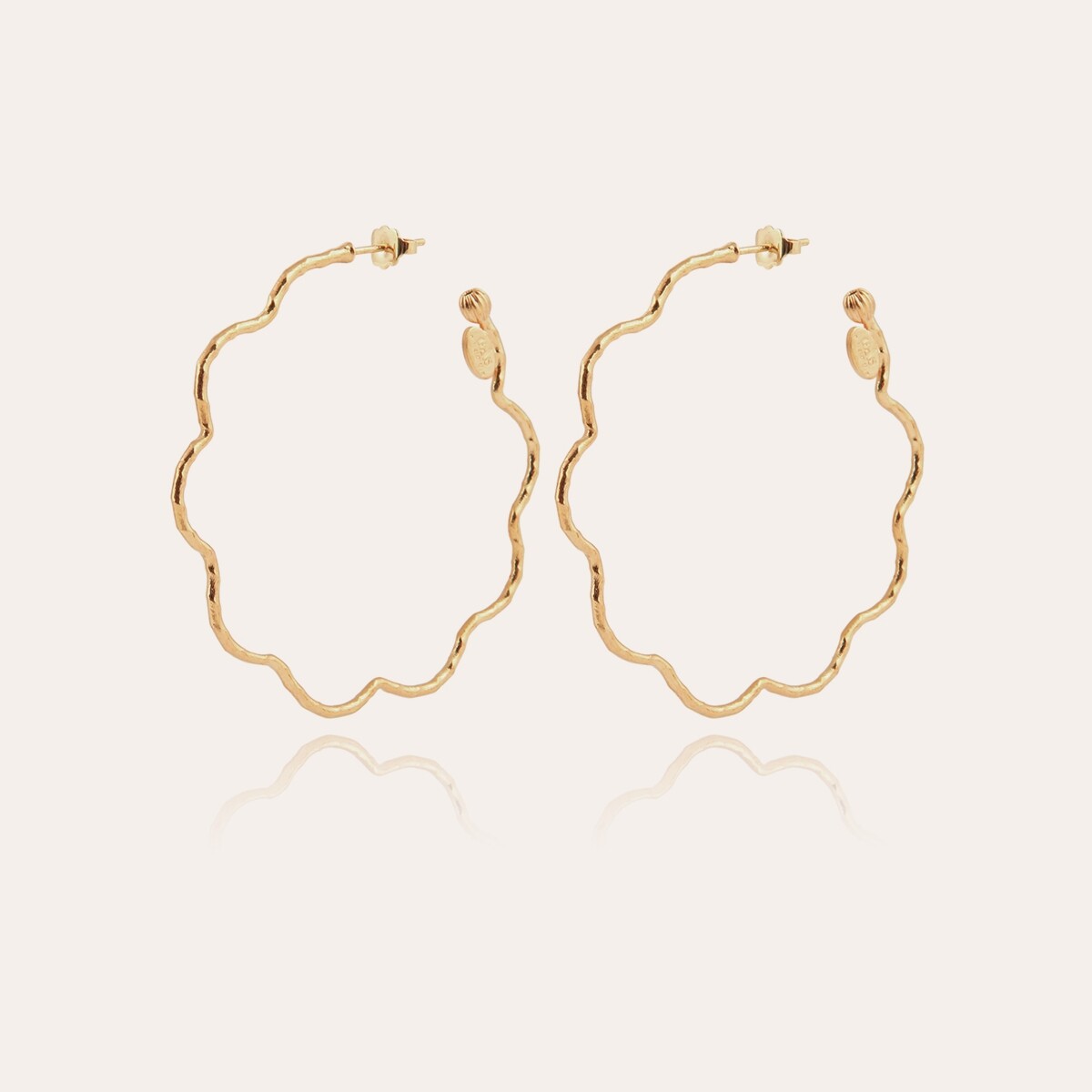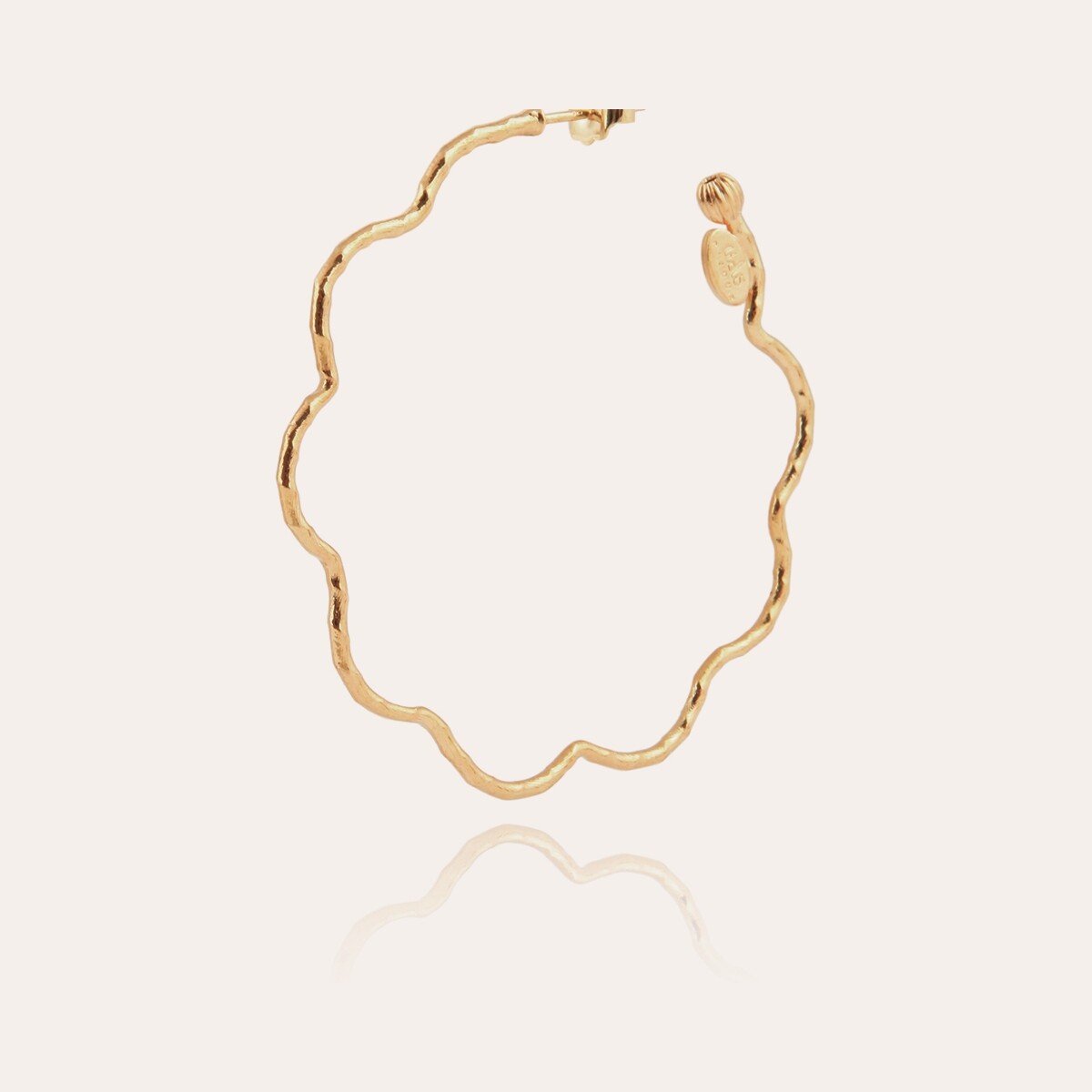 Délicates créoles dorées à l'or fin, sublimées par un travail artisanal de stries et de martelage réalisés à la main. Leur design raffiné capte la lumière avec élégance, apportant une touche sophistiquée à chaque tenue. Légères et intemporelles, elles incarnent l’excellence du savoir-faire Gas Bijoux pour une allure chic et sublimée en toute occasion.