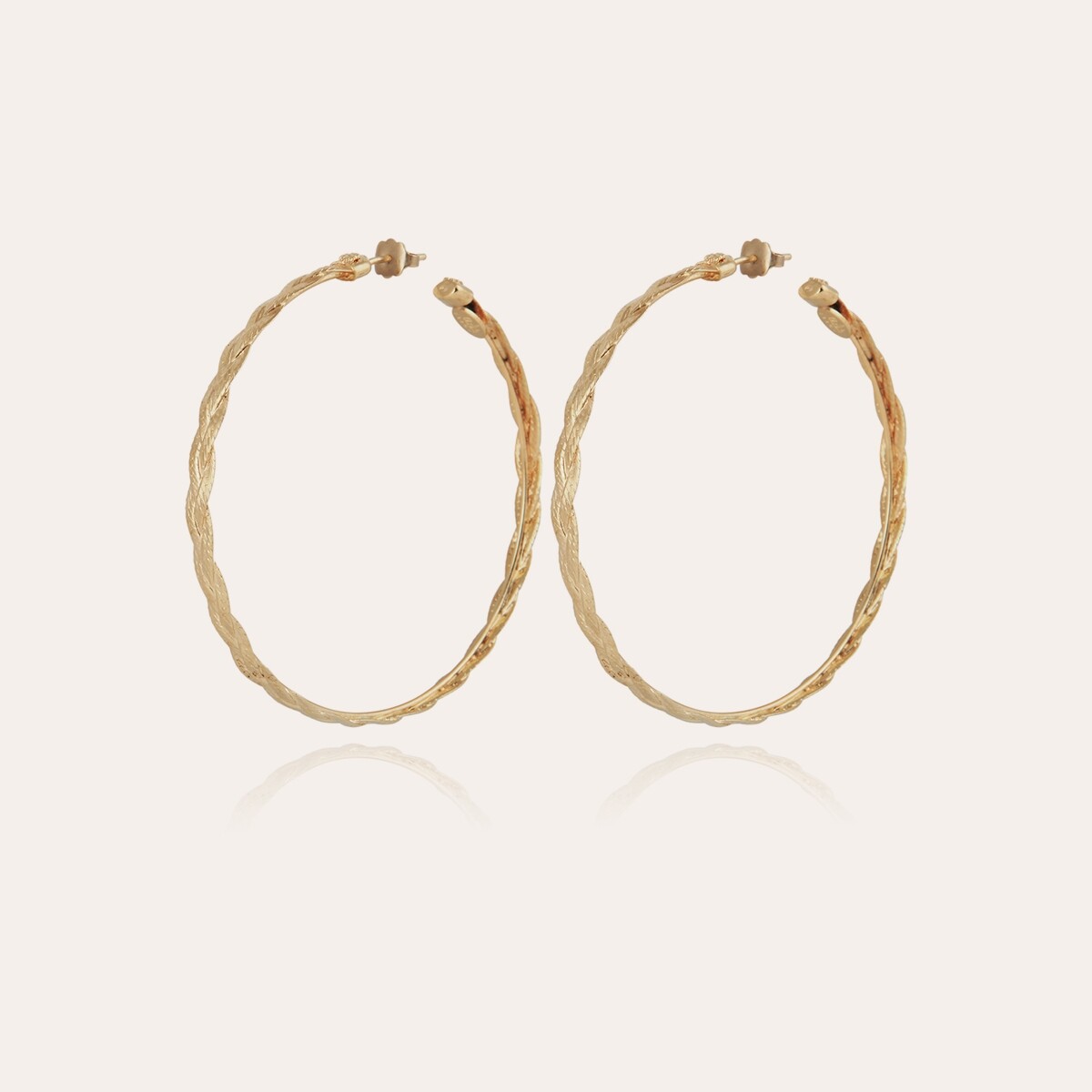 Issues de la collection Tresse, ces créoles dorées à l'or fin révèlent un fin assemblage de mailles délicatement tressées et légèrement striées. Leur design aérien capte la lumière et met en valeur le port de tête avec subtilité. Confectionnées avec soin, elles reflètent l’excellence artisanale de la Maison et apportent une touche de raffinement intemporel à chaque allure.