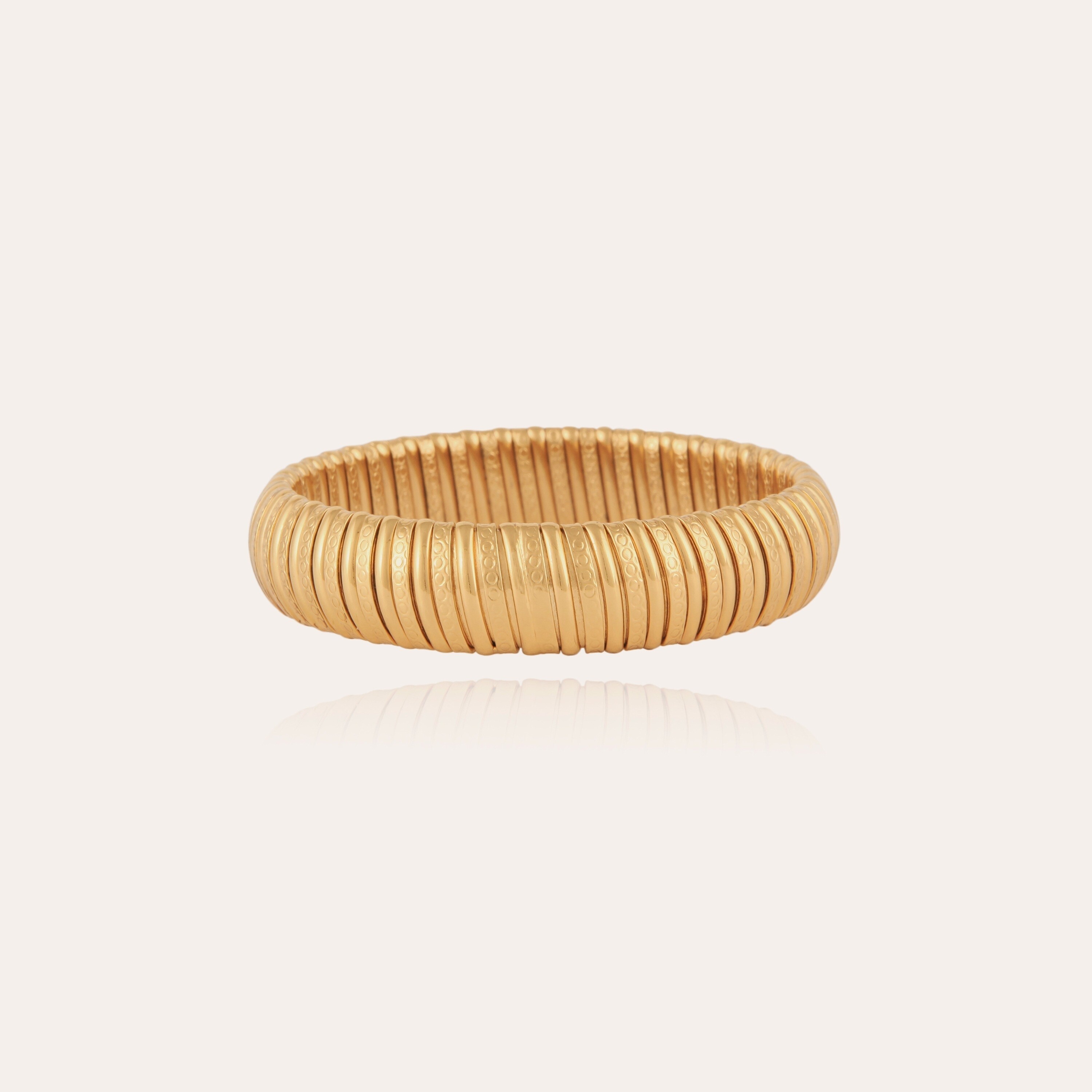 Alliance de confort et d’élégance intemporelle, ce bracelet doré à l'or fin revisite l’esprit du jonc avec une maille souple qui s’adapte parfaitement à tous les poignets. Son design épuré et ingénieux offre un porté ajustable et agréable au quotidien. Une création raffinée qui reflète tout le savoir-faire artisanal de la Maison.