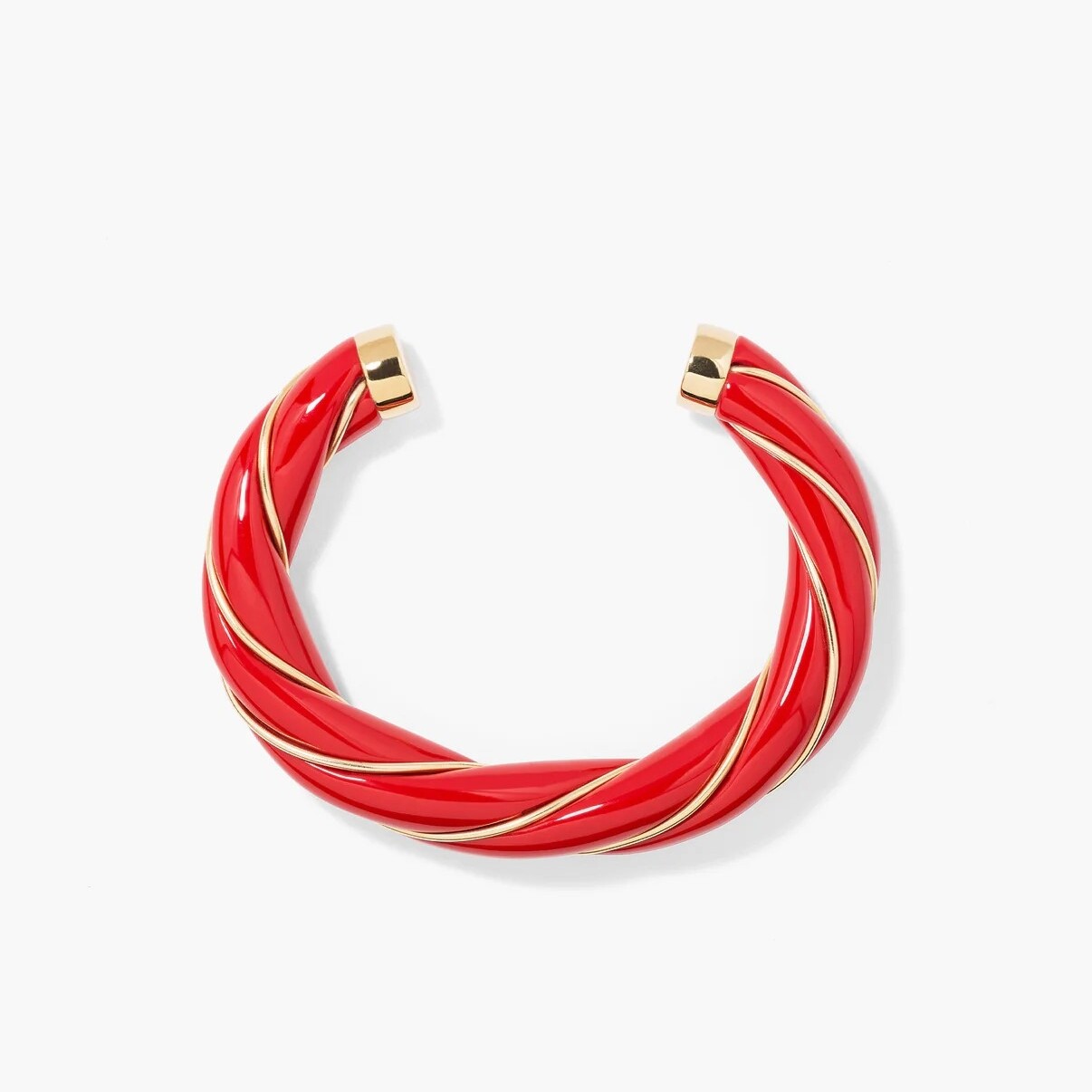 Jonc Diana torsadé en résine coloris rouge, doré à l'or jaune 750/1000