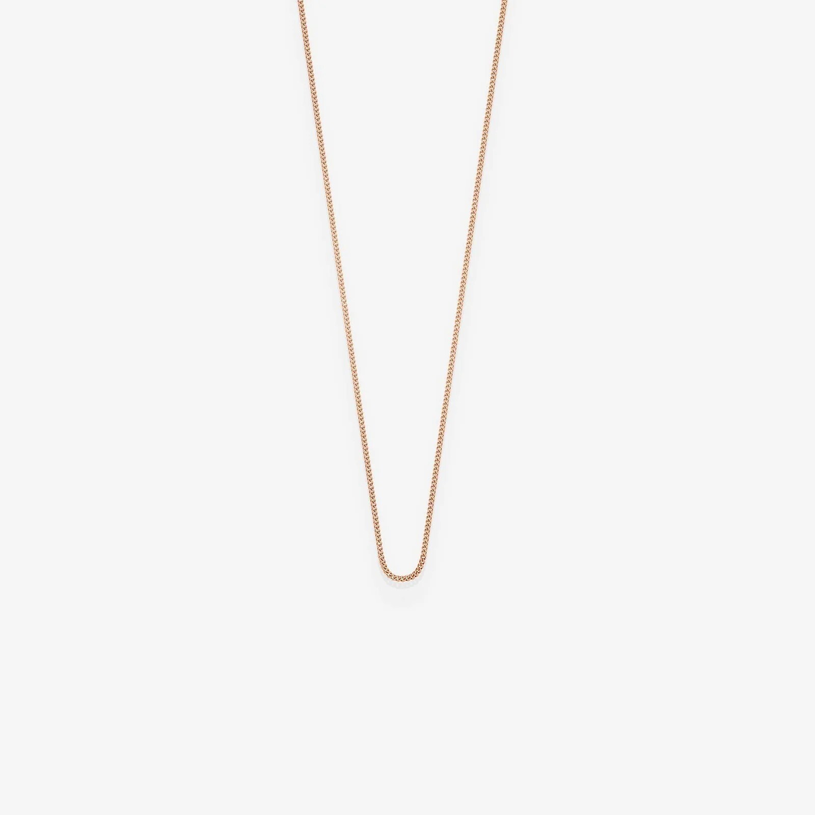Cette chaîne gourmette diamantée en or rose 18k est une ligne lumineuse qui capte la lumière. Son design plat, d'une longueur de 42 cm ou 50 cm, épouse le cou avec élégance, offrant une touche lumineuse à chaque mouvement.