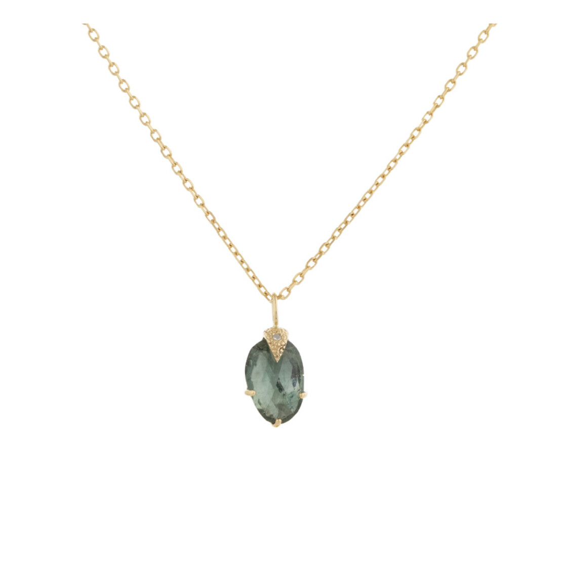 Collier Tourmaline et bélière diamants _ or jaune 14 carats - pièce unique.