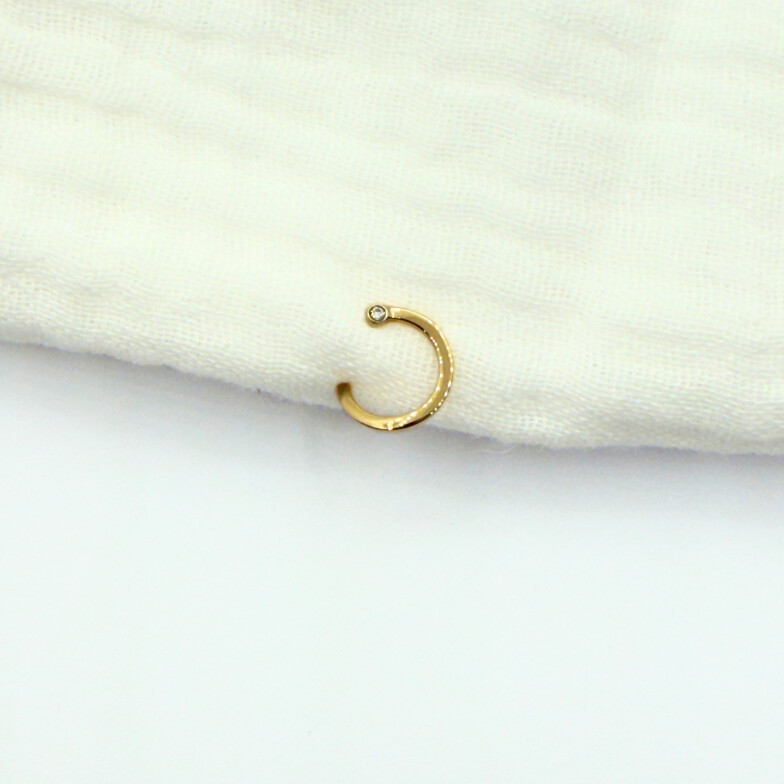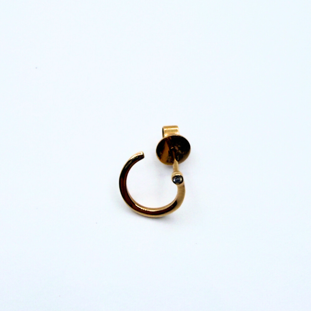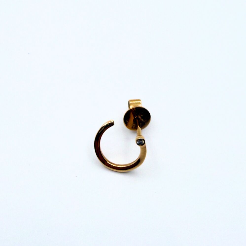 Créole or rose "Abstraction" de la marque Ofée avec un diamant. Elle souligne parfaitement l'oreille.