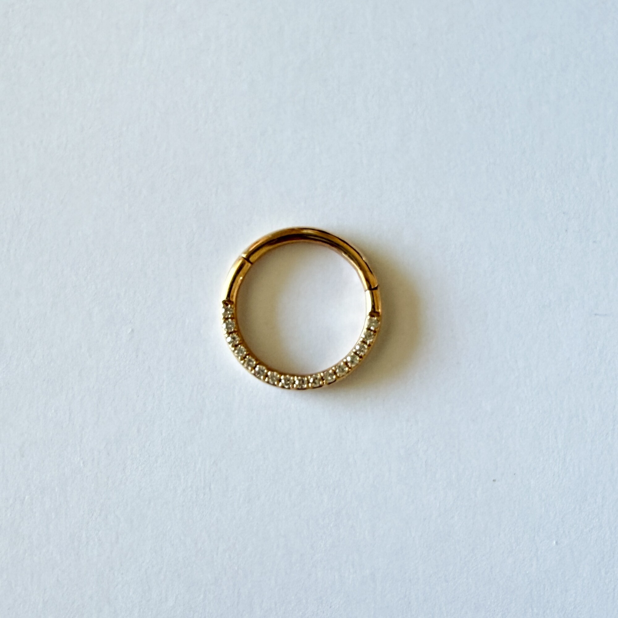 Un piercing anneau en diamants et or rose signé Djula, à l’élégance fine et lumineuse.