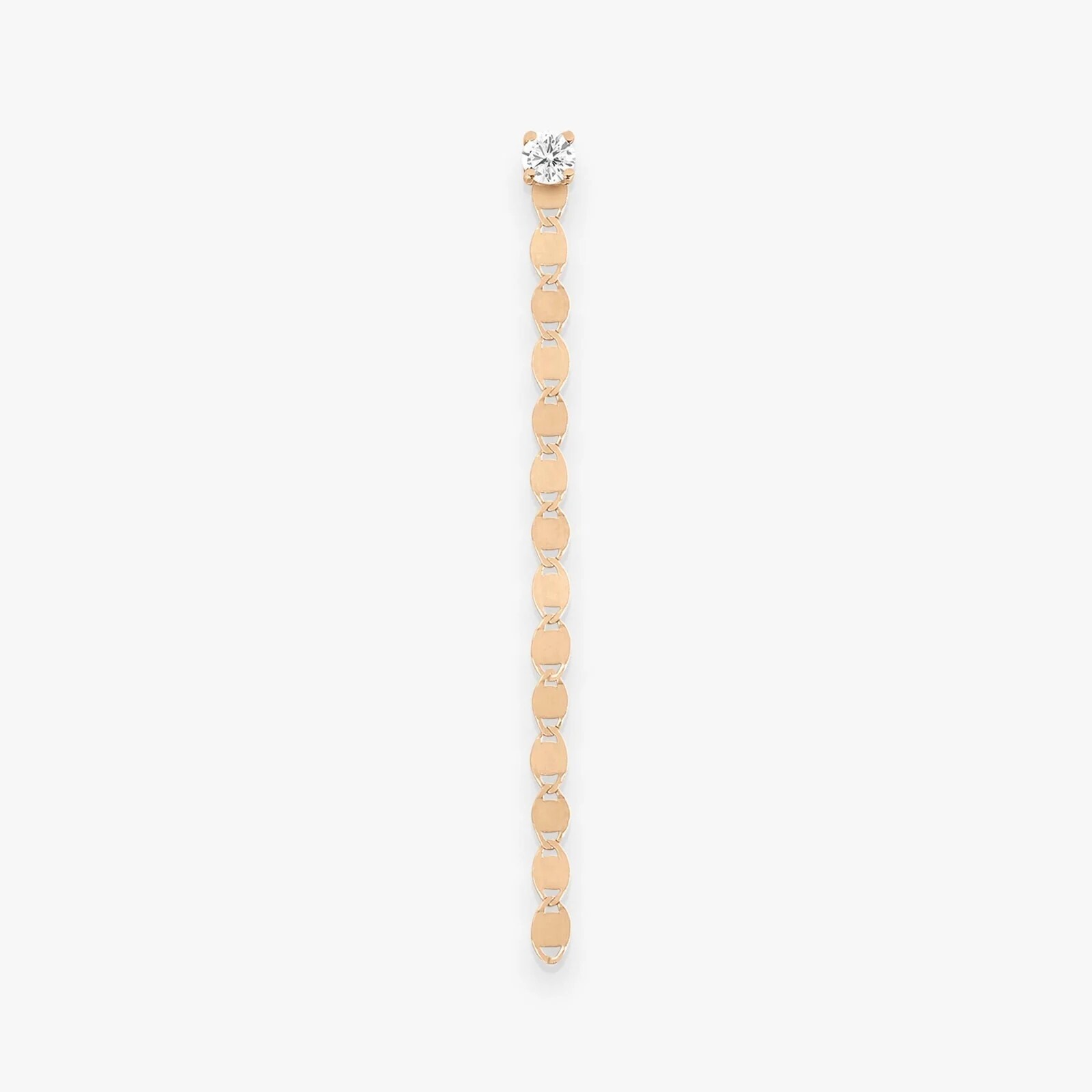 La boucle d’oreille Skin Tattoo, en maille de pastilles d’or qui miroitent à chaque mouvement de tête, se couronne au sommet d’un diamant de 0,11 ct, captant tous les regards et scintillant d’une intensité unique.